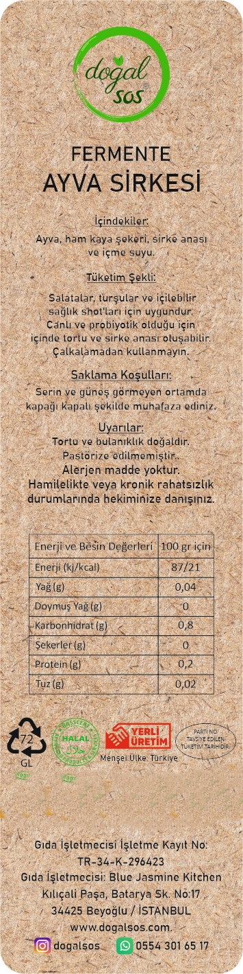 Fermente Ayva Sirkesi, sağlıklı bir yaşam tarzına sahip olmak isteyenler için mükemmel bir destekleyici üründür. Doğal ve geleneksel yöntemlerle elde edilen bu sirke, lezzeti ve sağlığa olan faydalarıyla her yudumda bir dinginlik ve zindelik sunar. Kaliteli yaşam adına Fermente Ayva Sirkesi'ni mutfaklarınızdan eksik etmeyin!