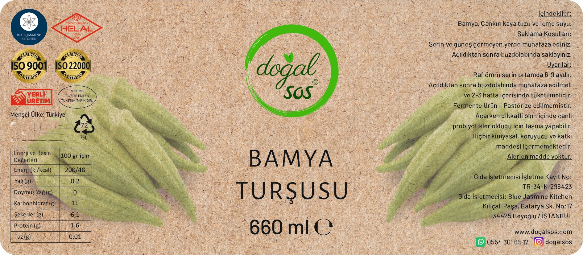 Fermente bamya turşusu, Türkiye mutfağının en özel lezzetlerinden biri olup, hem sağlıklı hem de lezzetli bir seçenek seçeneği sunuyor. Geleneksel olarak uygulanan bu turşu, özellikle yaz mevsiminde taze bamyaların en iyi hallerinin kullanılmasıyla yapılmaktadır. Fermentasyon süreci, bamyaların hem besin değerini arttırmada hem de kendine özgü bir tat ve aroma kazandırmaktadır. Hiç bir katkı maddesi kullanılmadan doğal fermantasyon yöntemi ile lakto fermente olarak üretilmiştir.