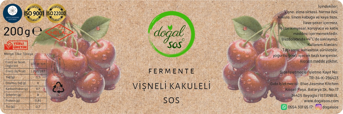 Fermente Vişneli Kakuleli Sos, eşsiz lezzet profiliyle, mutfaklarınızda vazgeçilmez bir yardımcı olacak. Üstün kalite vişnelerin özenle seçilmesiyle hazırlanmış olan bu sos, doğanın sunduğu en taze malzemelerin bir araya gelmesiyle oluşuyor. Fermeantasyon süreci sayesinde hem besin değerlerini artırıyor hem de sosun lezzetini derinleştiriyor.