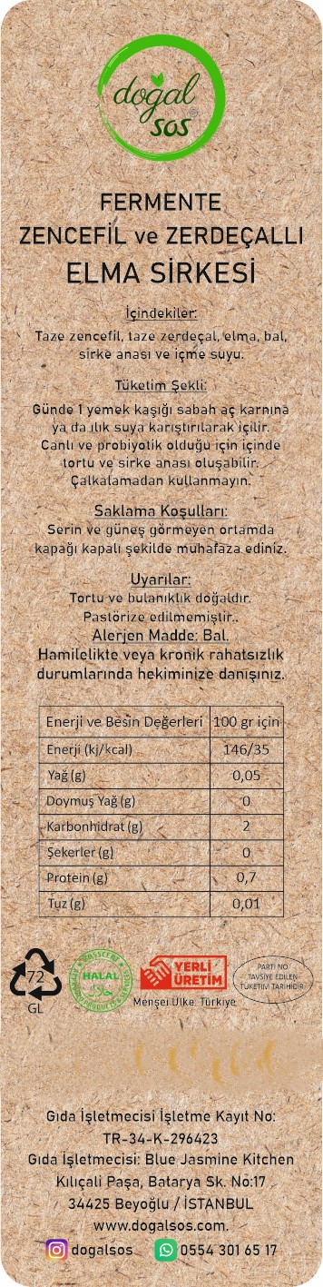 - Yüksek Kalite Malzeme: %100 organik elma, taze zencefil ve doğal zerdeçal kullanılarak üretilmiştir.