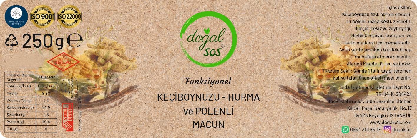 Fonksiyonel Keçiboynuzu-Hurma ve Polenli Macun, sağlık ve lezzeti bir arada arayanlar için vazgeçilmez bir üründür. Doğanın sunduğu bu eşsiz bileşenler ile hazırlanan macun, günlük yaşamınıza enerji ve besin desteği katacaktır. Siz de sağlıklı yaşamak için bu lezzetli macunu denemeyi unutmayın!