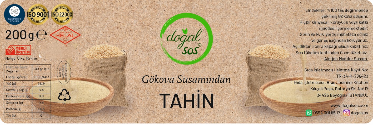- Doğal İçerik: Gökova Susamından Tahin, %100 doğal ve katkı maddesi içermeyen bir üründür. Tamamen organik susam tohumlarının soğuk sıkım yöntemiyle işlenmesiyle elde edilmiştir.