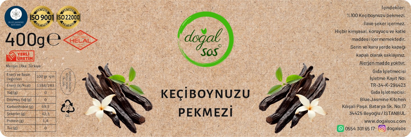 - Doğal İçerik: Harnup pekmezi %100 doğal keçiboynuzu meyvesinden üretilmiştir. İçerisinde hiçbir katkı maddesi, şeker veya kimyasal madde bulunmaz.
