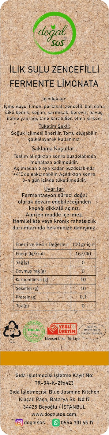 İLİK SULU ZENCEFİLLİ FERMENTE LİMONATA ( 250 ml )