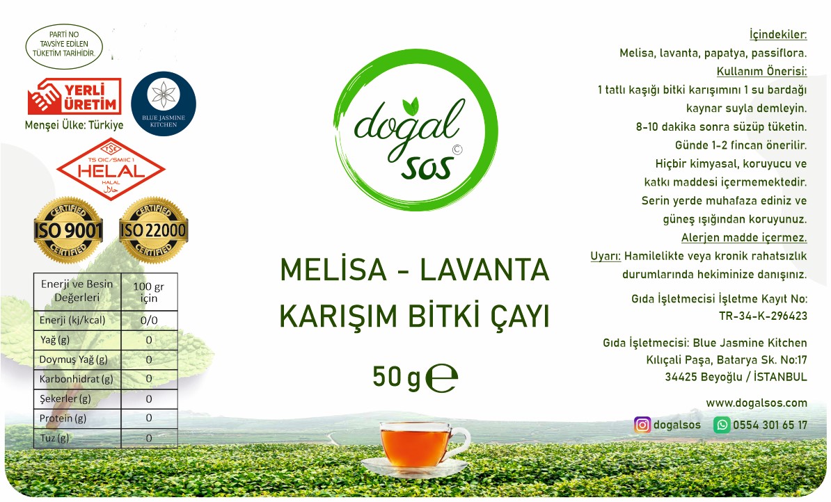 Melisa - Lavanta Karışım Bitki Çayı, %100 doğal içeriklere sahiptir. Çok yıllık bir bitki olan melisa, limon kokusu ile bilinir ve sakinleştirici etkisi sayesinde uyku düzenini iyileştirmeye yardımcı olur. Lavanta ise, huzur verici aromasıyla bilinir ve stres azaltma, rahatlatma özellikleri ile tanınır. Bu iki bitkinin birleşimi, zihin ve beden dengesini sağlamak için ideal bir formül oluşturur.