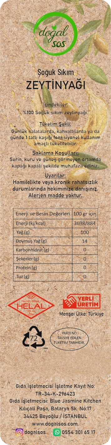 - Doğal ve Organik: Ürünümüzde hiçbir yapay katkı maddesi, koruyucu veya kimyasal kullanılmamıştır. Tamamen doğal ve organik zeytinlerden üretilmiştir.